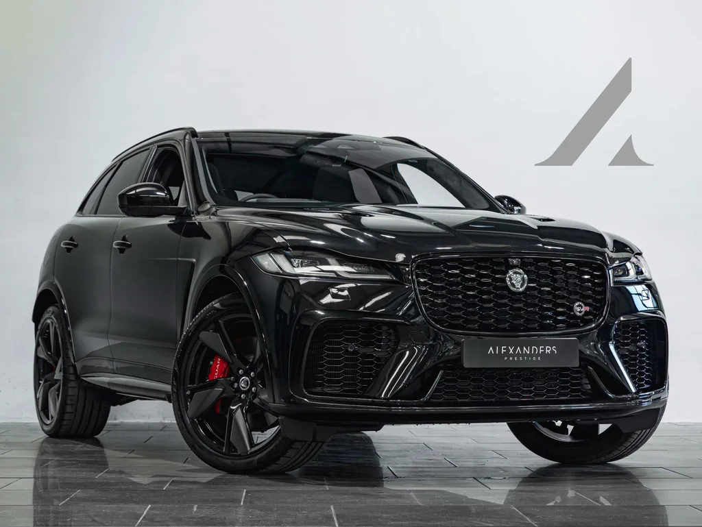 The P550 marked the send-off for Jaguar's supercharged V8 SUV, and this 2023 example in Ultimate Black Metallic with the Black Exterior Pack and 22-inch forged wheels presents exactly as the factory intended — aggressive without being ostentatious. With just 14,000 miles on the clock, one owner from new, full Jaguar service history, and remaining manufacturer warranty through July 2026, the mechanical and cosmetic condition should be effectively as-new.