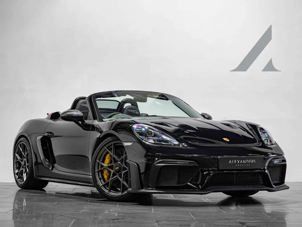The 718 Spyder RS sits at the apex of Porsche's open-top mid-engine range, sharing its 4.0-litre naturally aspirated flat-six with the 911 GT3 — a distinction that makes it one of the most rewarding engines in current production. This 2024 example in Black over a Black and Arctic Grey Race-Tex and leather interior has covered just 5,000 miles and retains manufacturer warranty through January 2027.