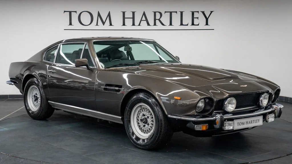 Finished in Cumberland Grey Metallic over a Black interior, the car shows 33,000 miles on the clock and is equipped with a period-correct 5-speed manual gearbox paired with the 5.3-litre V8. The Aston Martin V8 Saloon — despite its name, a two-door grand tourer — represents one of the longest-running and most recognisable shapes in the marque's history, and this particular example carries cultural cachet that few cars of any era can match.