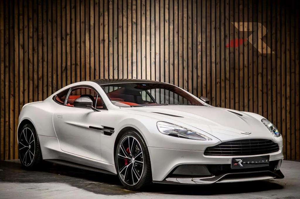 A 2013 Aston Martin Vanquish finished in white with an unusually rich carbon fibre specification. The second-generation Vanquish marked Aston's return to bonded aluminium VH architecture wrapped in carbon fibre bodywork, and this car leans into that theme with a carbon fibre roof panel, carbon side strakes, carbon fibre twill facia and matching door mirror caps. The 2+2 cabin is trimmed in semi-aniline leather with Aston Martin Wings headrest embroidery and accented by the Shadow Bronze Jewellery Pack.