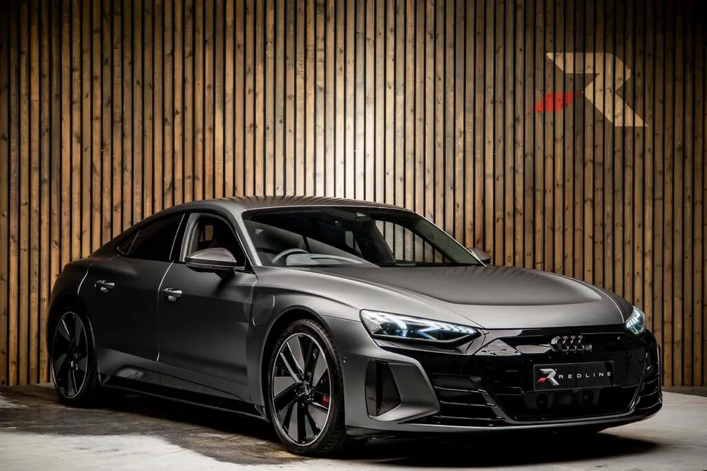 A 2021 Audi RS e-tron GT in the range-topping Carbon Vorsprung specification — the most comprehensively equipped version of Audi's flagship electric performance four-door. Sharing its J1 platform with the Porsche Taycan, the RS e-tron GT pairs twin permanent-magnet synchronous motors with a 93.4kWh battery to deliver 590bhp, 830 lb/ft of torque and 0-62mph in 3.3 seconds, with a top speed of 155mph. Carbon Vorsprung trim adds the full-length panoramic glass roof, carbon exterior detailing, Matrix LED headlights, a 360-degree camera system, three-zone climate control and wireless phone charging as standard, along with the 21-inch 10-spoke trapezoidal aero wheels in black fitted here.