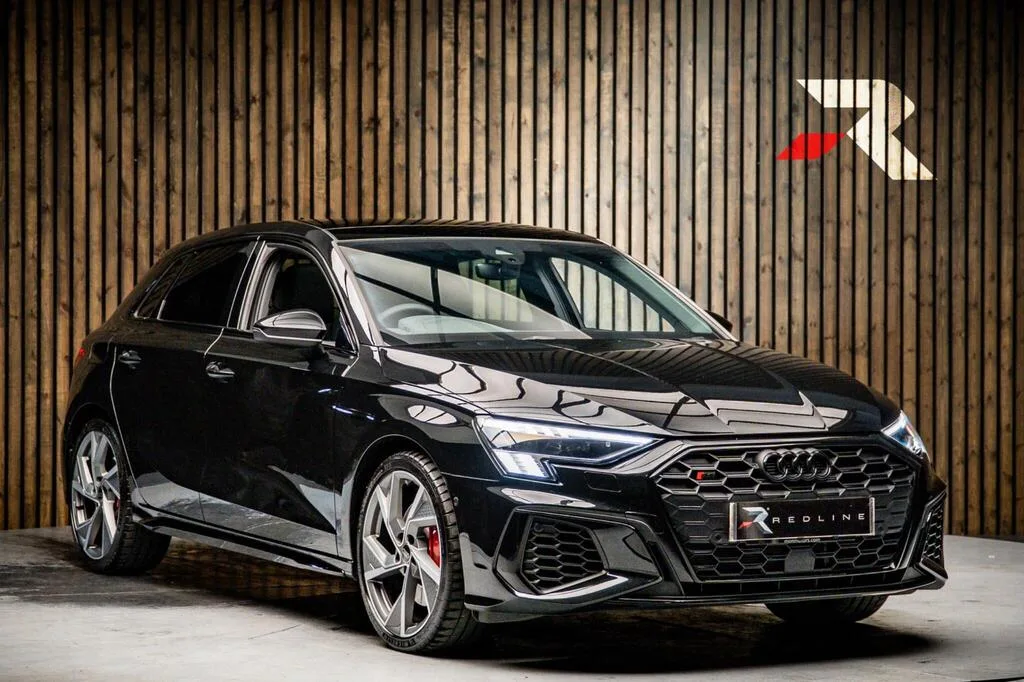 This 2023 Audi S3 Sportback arrives in Black Edition trim, finished in solid black over a specification that favours purposeful kerbside presence. Red brake calipers sit behind the signature alloys, while the Technology Pack Pro adds front and rear parking sensors, reversing camera, premium audio, heated seats and wireless charging — collectively transforming the cabin into a considerably more equipped environment than the standard Black Edition allows.