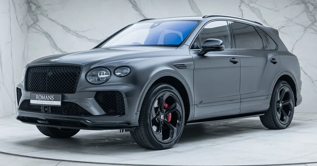 This 2024 Bentayga V8 S wears Mulliner Anthracite Satin - a £16,600 factory option - paired with Beluga leather and Alcantara, making for one of the more thoughtfully specified examples of Bentley's driver-focused SUV. The S sits between the standard V8 and Mulliner cars in the range, and with the W12 now discontinued it effectively represents the sharpest all-round Bentayga currently available. Key options include Naim for Bentley with satin black speaker grilles, the Touring Specification, Front Seat Comfort pack, and extensive carbon fibre interior detailing across the fascia, centre console and door waistrails.