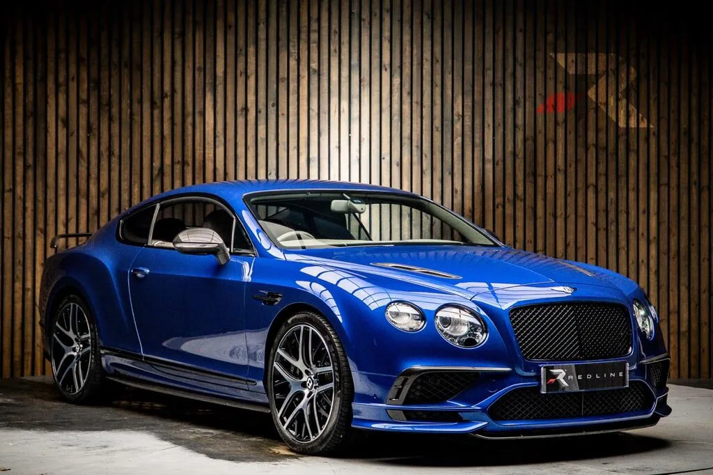 A 2017 Bentley Continental Supersports in Moroccan Blue, showing just 13,014 miles from new. The Supersports sat at the top of the second-generation Continental GT range, extracting 700 bhp and 820 lb-ft from its 6.0-litre twin-turbocharged W12 — enough for a claimed 206 mph top speed and a sub-four-second sprint to sixty. Production numbers were limited, making well-specified, low-mileage examples increasingly sought after.