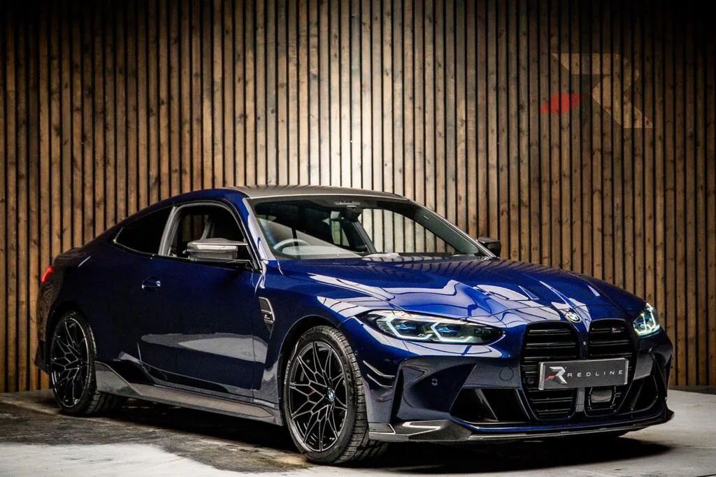 A 2023 BMW M4 Competition finished in Tanzanite Blue, a colour that shifts dramatically under different light and suits the car's aggressive bodywork far better than the more commonly specified Alpine White or Black Sapphire. With 14,518 miles on the clock, this is a lightly used example of the G82 generation, powered by the S58 3.0-litre twin-turbo straight-six producing 503 bhp and 649 lb/ft, routed through an eight-speed automatic.