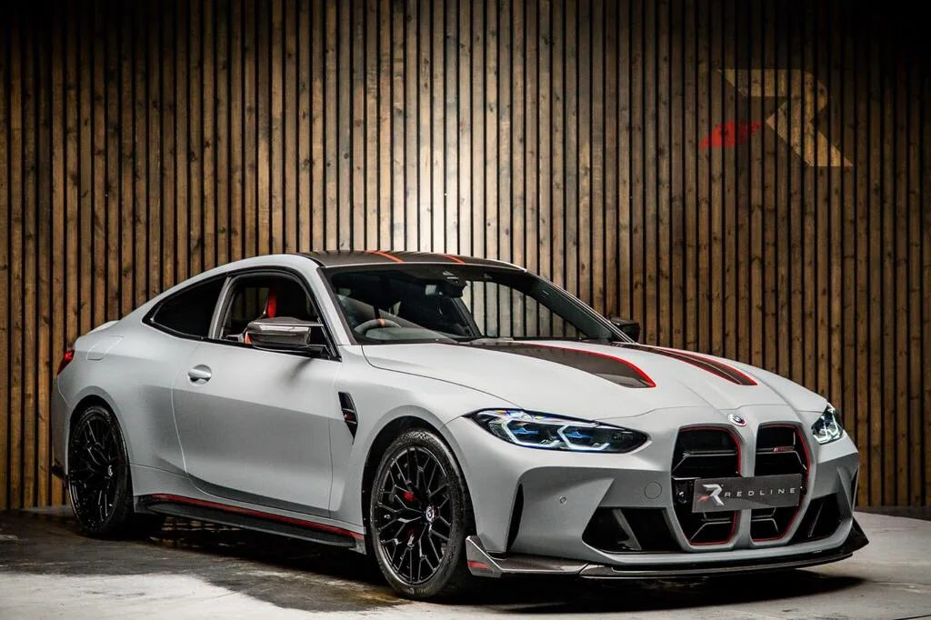 One of just 1,000 M4 CSLs produced, this 2023 example has covered a mere 9,626 miles from new. The CSL — Competition, Sport, Lightweight — strips back the standard M4 to its essentials: 543 bhp from BMW's S58 twin-turbocharged straight-six sent exclusively to the rear wheels, extensive carbon fibre construction across the roof, bonnet, boot lid, and rear diffuser, plus a fixed rear wing that signals serious intent. It is the lightest and most focused G82 M4 available.