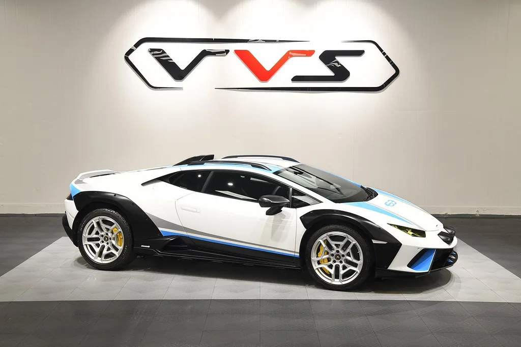 A 2024 Lamborghini Huracán Sterrato with 750 miles, finished in Bianco Monocerus over a Nero Ade Alcantara and leather interior with Blu Cepheus contrast stitching. The Sterrato represents the final naturally-aspirated evolution of the Huracán platform — a raised, rally-inspired V10 supercar built in limited numbers before the marque's move to hybridisation, making low-mileage UK examples genuinely scarce.
