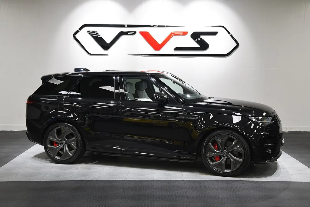 This 2024 Range Rover Sport P550e Autobiography pairs JLR's plug-in hybrid drivetrain with the full-fat Autobiography specification, combining a 3.0-litre straight-six with an electric motor for a combined 542 bhp and a claimed 4.7 second 0-62 mph time. Finished in Santorini Black over a two-tone Ebony and Ivory extended leather interior, it has covered 33,000 miles with full Land Rover main dealer service history (Aylesford) at every interval since first registration in January 2024.