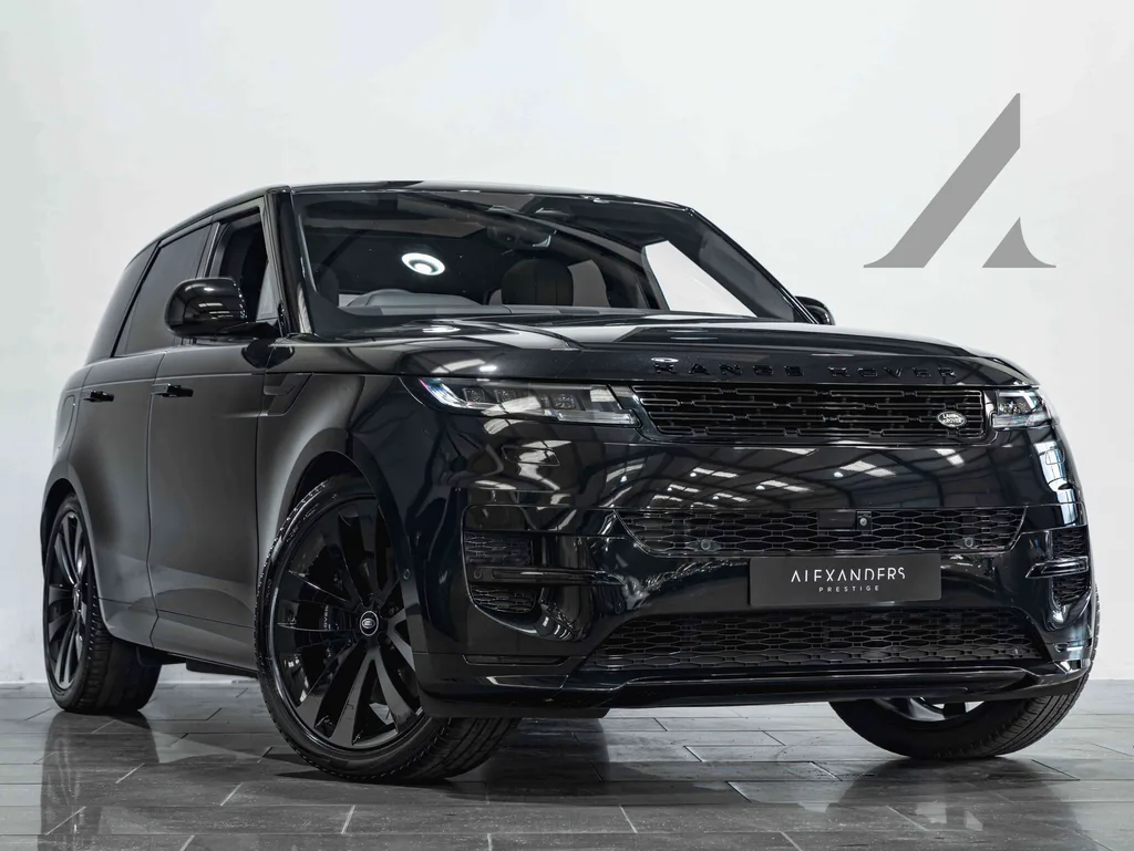 A one-owner 2024 Range Rover Sport Dynamic SE P460e finished in Santorini Black Metallic over an Ebony Perforated Windsor Leather interior. The P460e powertrain pairs JLR's Ingenium 3.0-litre straight-six with a 38.2 kWh battery and electric motor for a combined 454 bhp, capable of around 70 miles of pure-electric running before the petrol engine wakes up — making it one of the more usable executive SUVs on the road for those with predictable daily mileage.