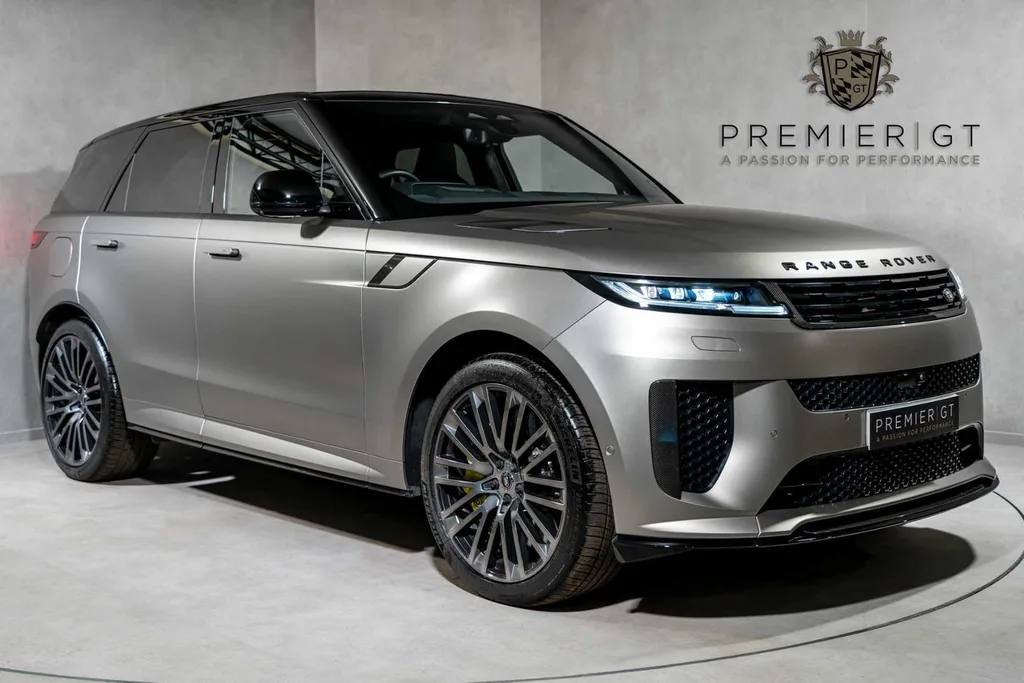 The SV sits at the apex of the Range Rover Sport lineup, powered by the BMW-sourced 4.4-litre twin-turbocharged V8 producing 626 bhp and 554 ft-lb of torque. What separates the Edition One from the standard SV is the specification: carbon ceramic brakes with eight-piston Brembo callipers (a first for Range Rover), the 6D Dynamics hydraulic suspension system with active pitch and roll control, 23-inch forged wheels, and extensive carbon fibre detailing across the exterior and interior. The options list here adds a sliding panoramic roof, electrically deployable tow bar, and front refrigerator compartment.